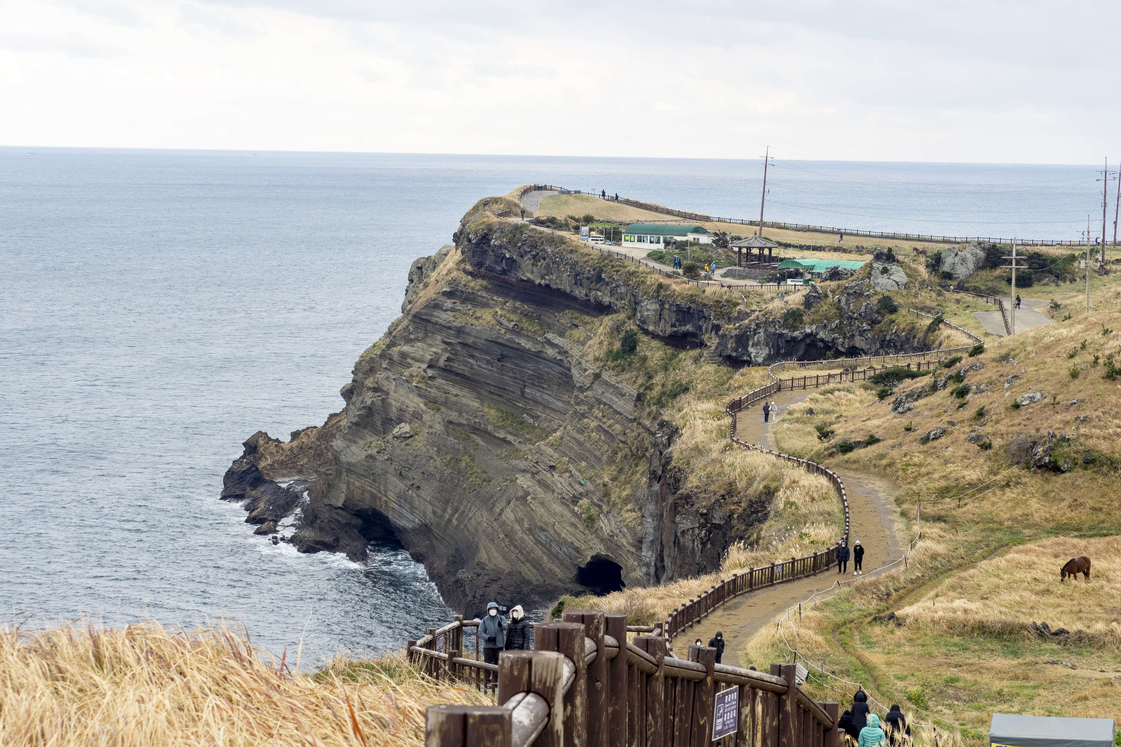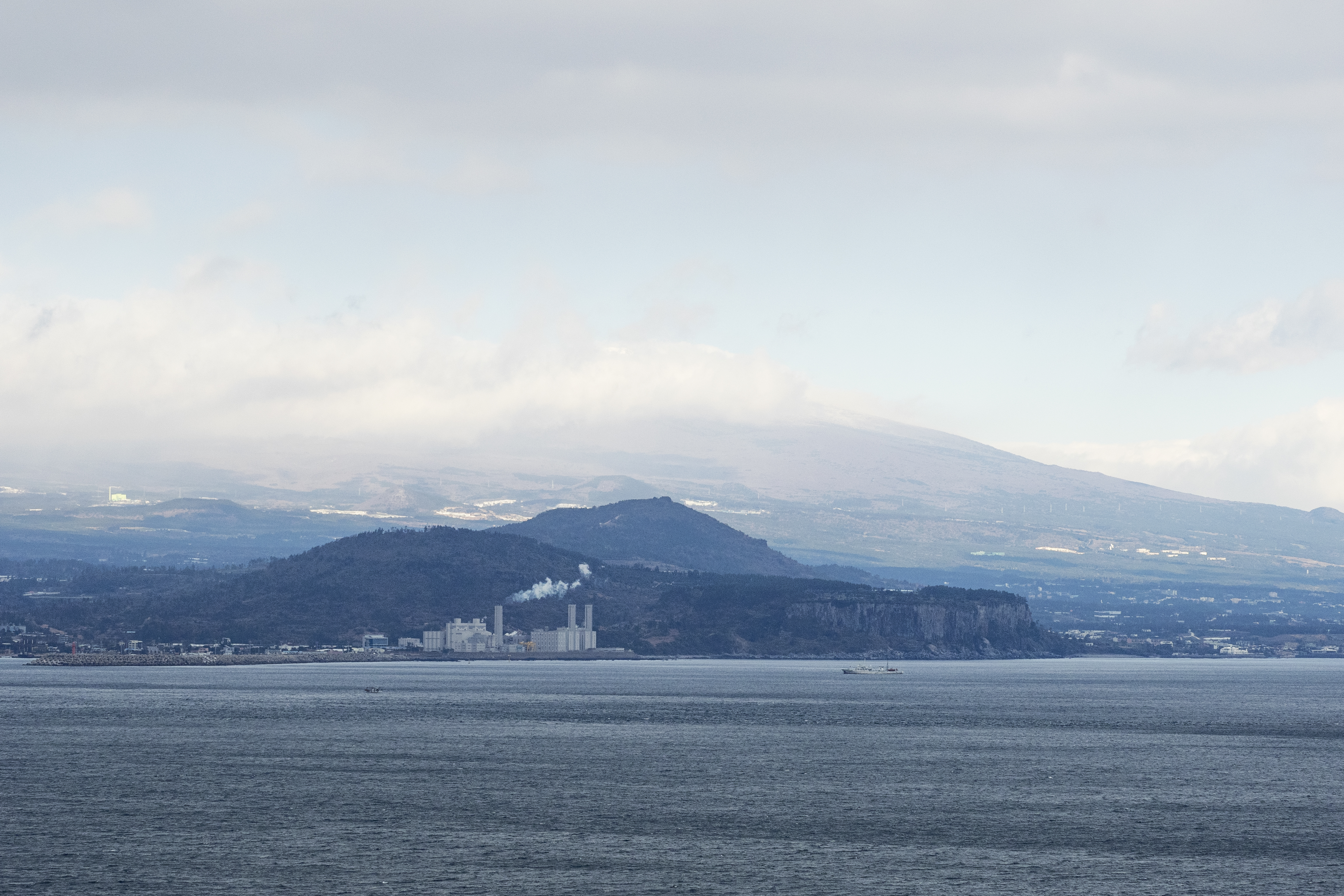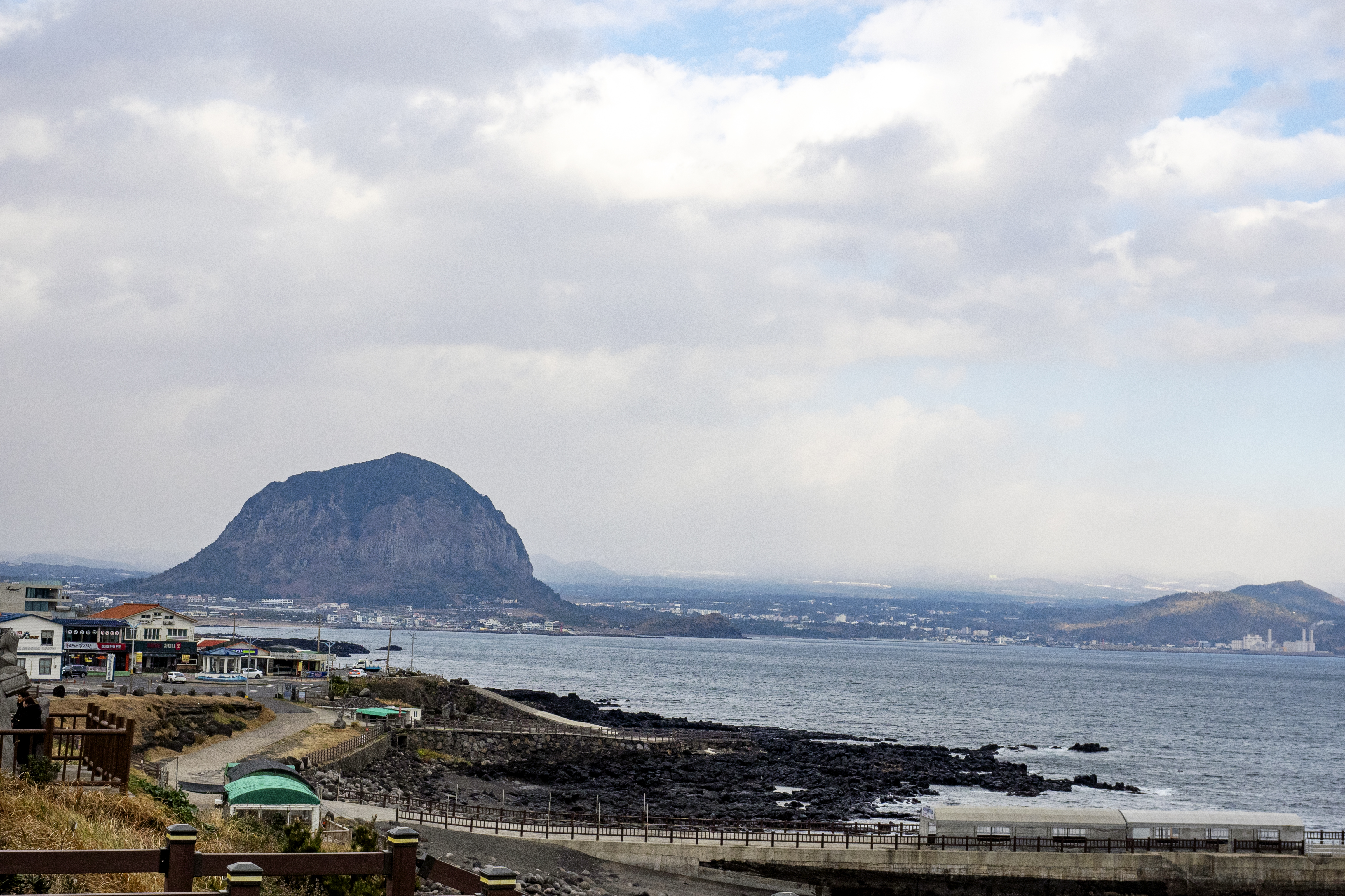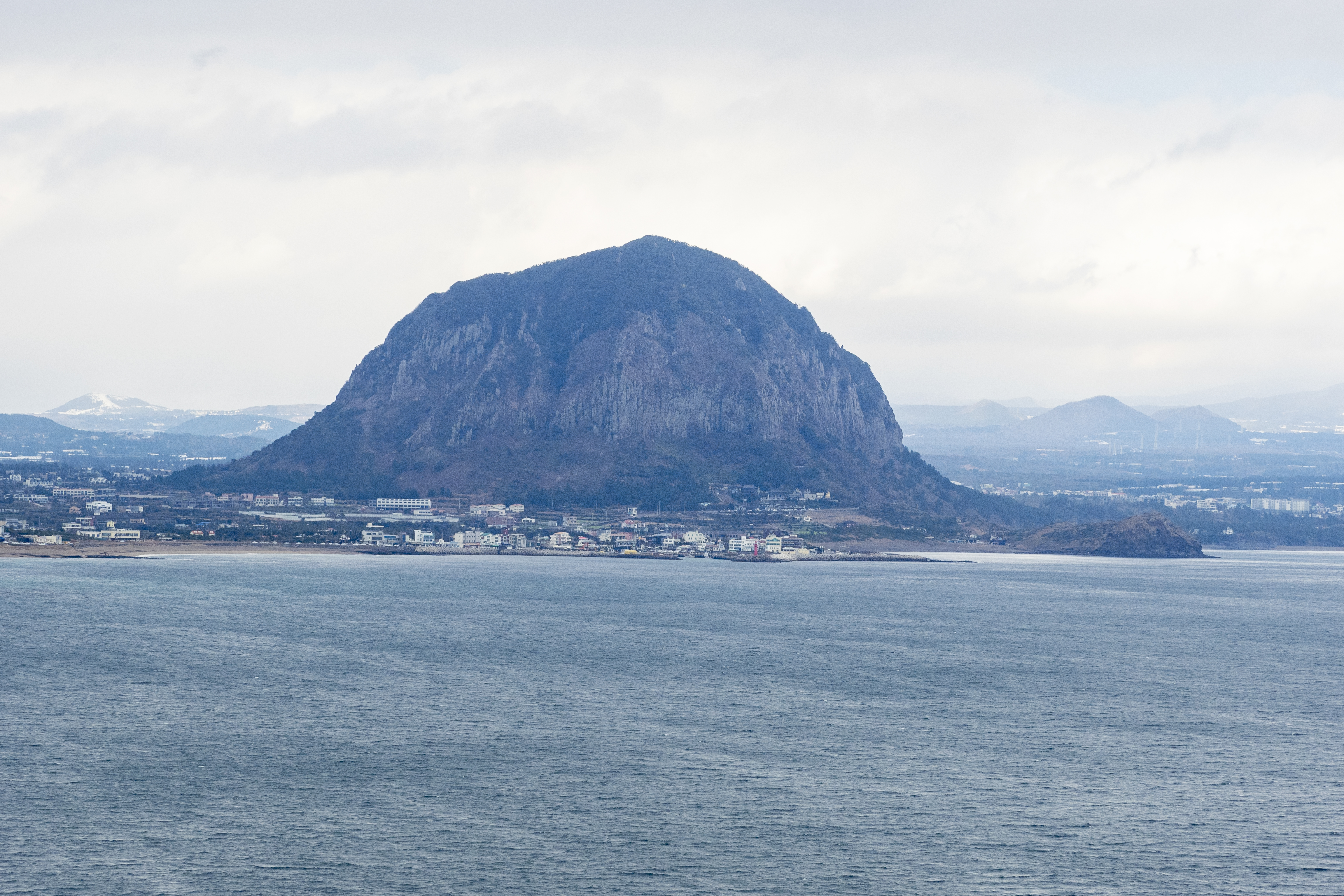 ▼ 둘레길 출구 주차장에서 본 산방산( 용머리해안)