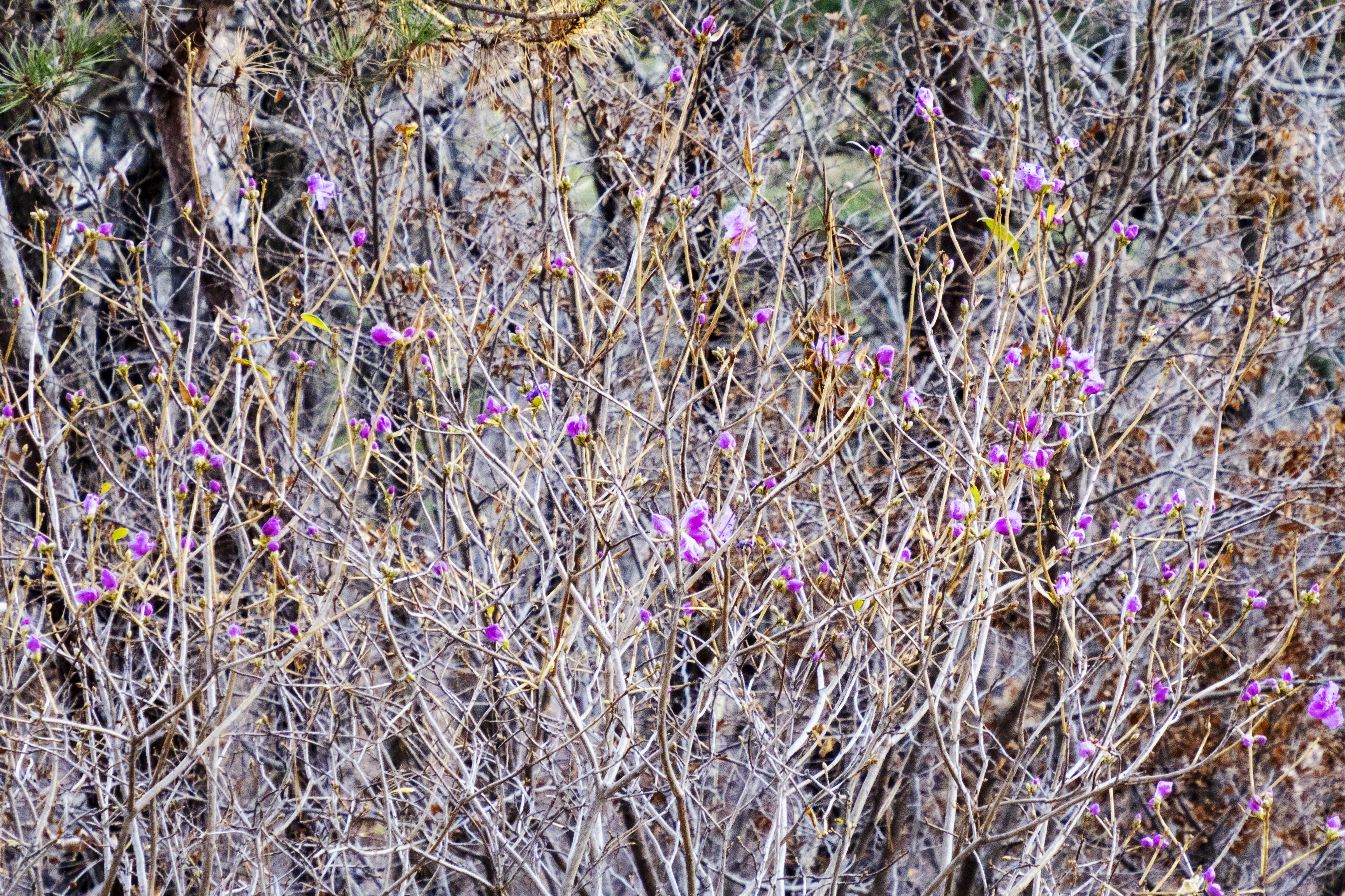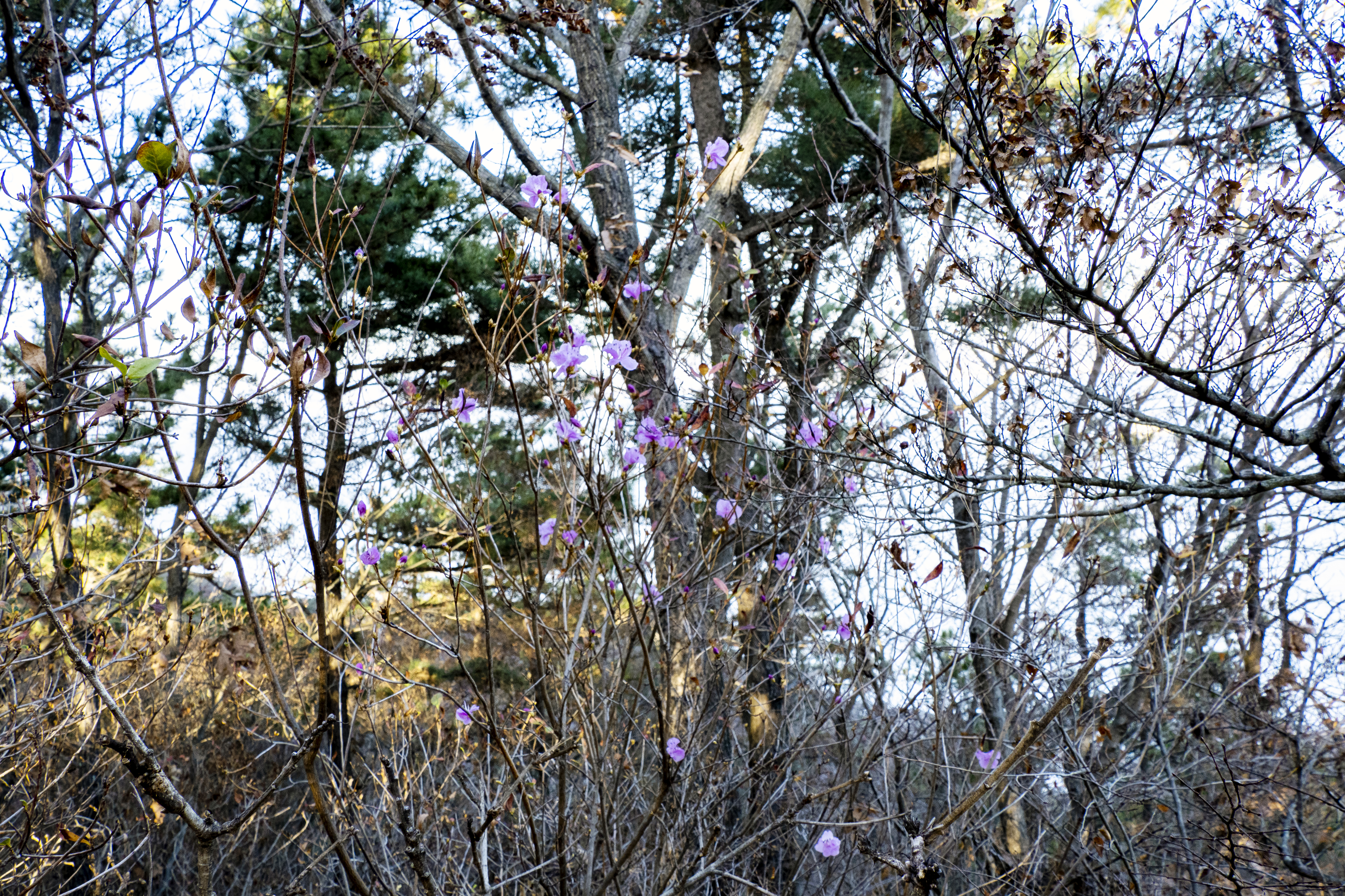 하산길에 계절을 망각한 진달래를 담았는데 추위를 얼마나 버틸지 궁금합니다.