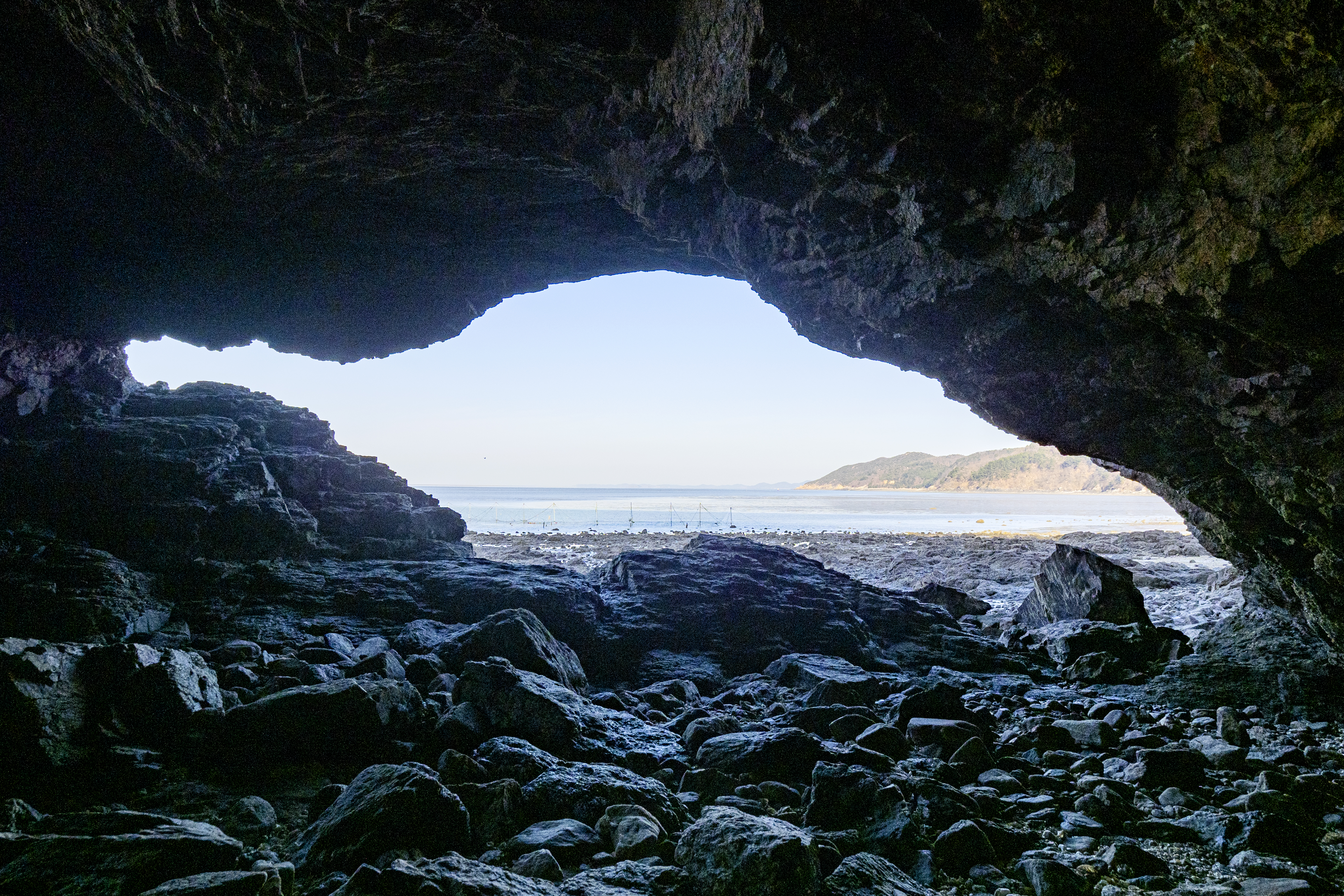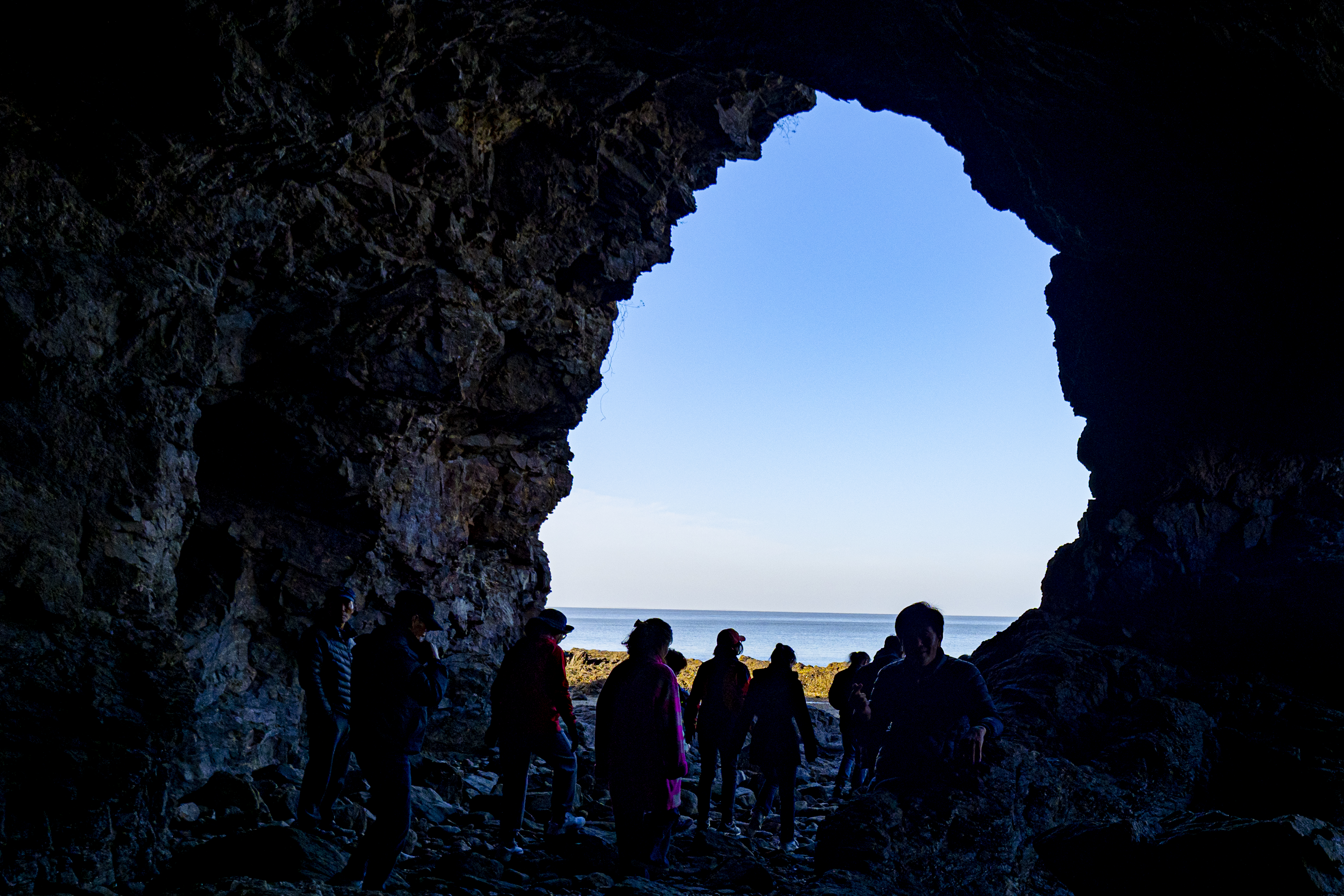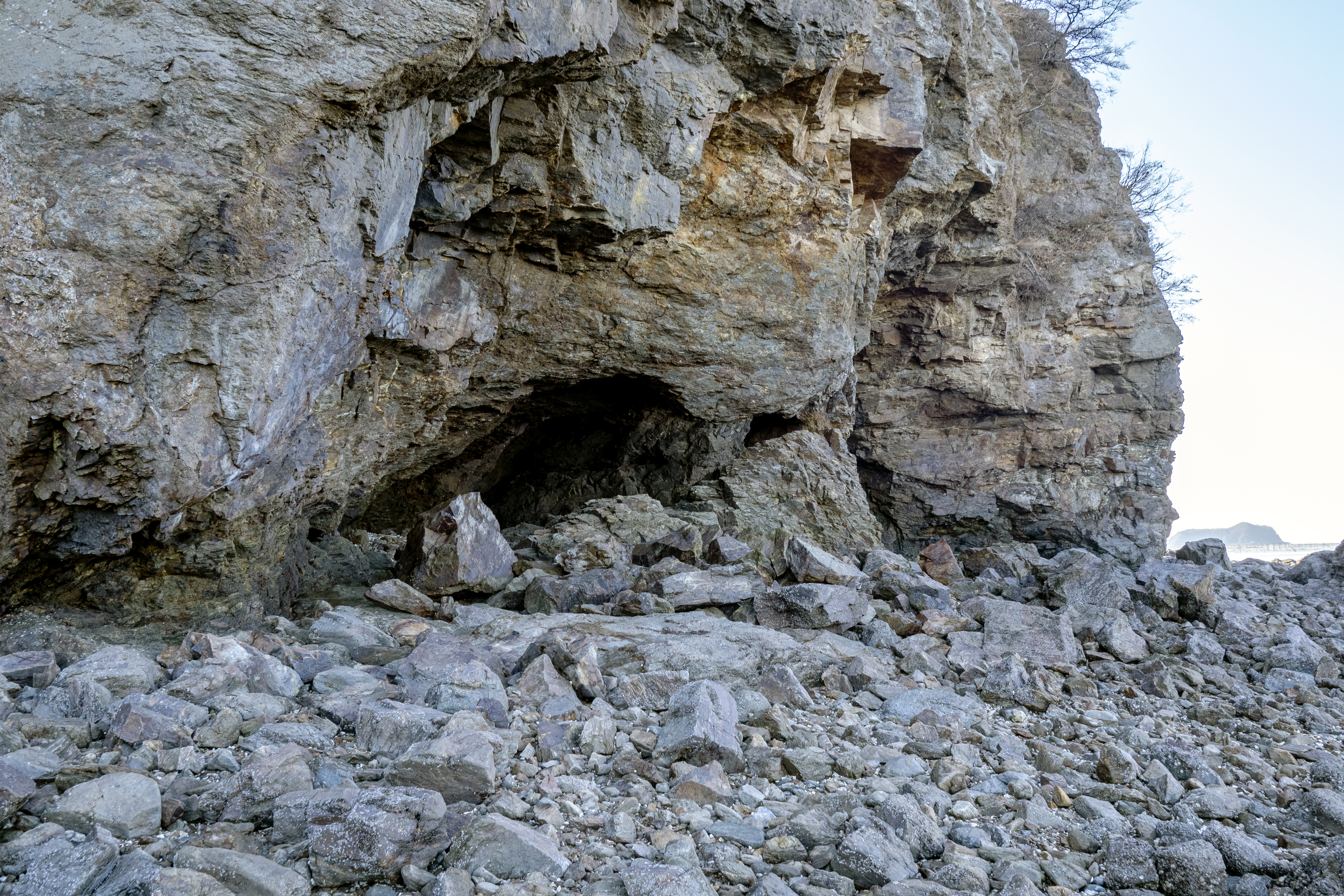 휴앤뷰팬션에서 10분정도 동쪽으로 썰물때 해안으로 걸어가면 해식동굴이 나옵니다.