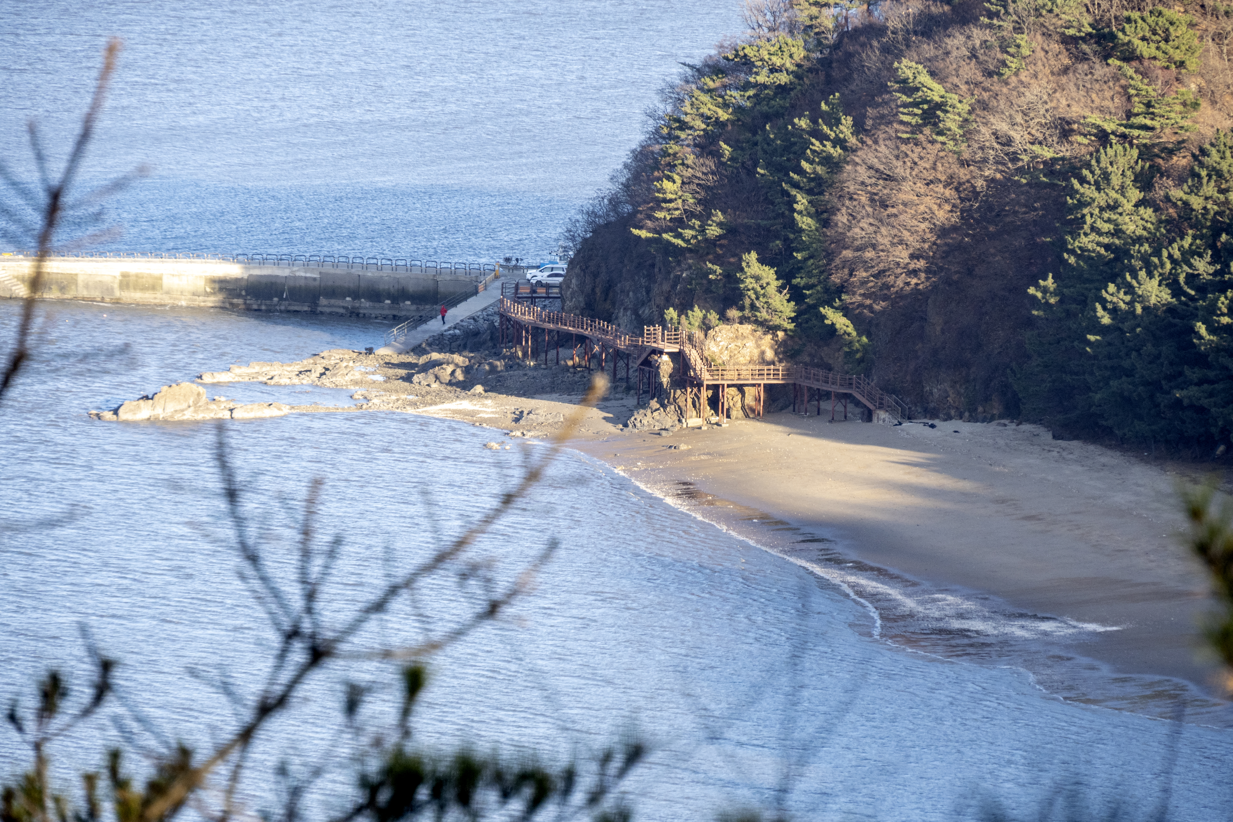 밀물때를 이용하여 해안으로 이동 하시면 경사가 심한 등산로 보다 시간도 적게 걸리고 편하게 이동 하실 수 있으며