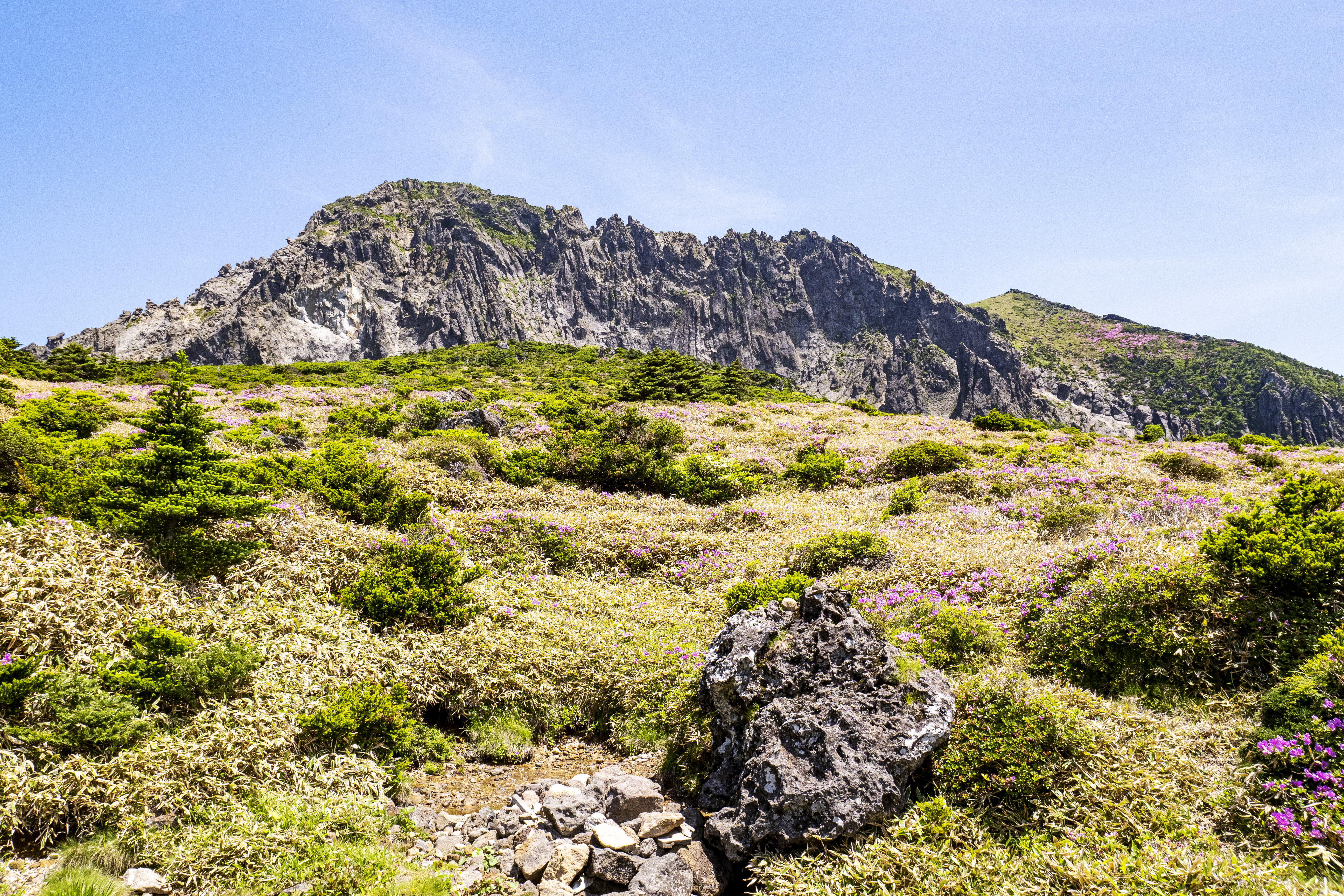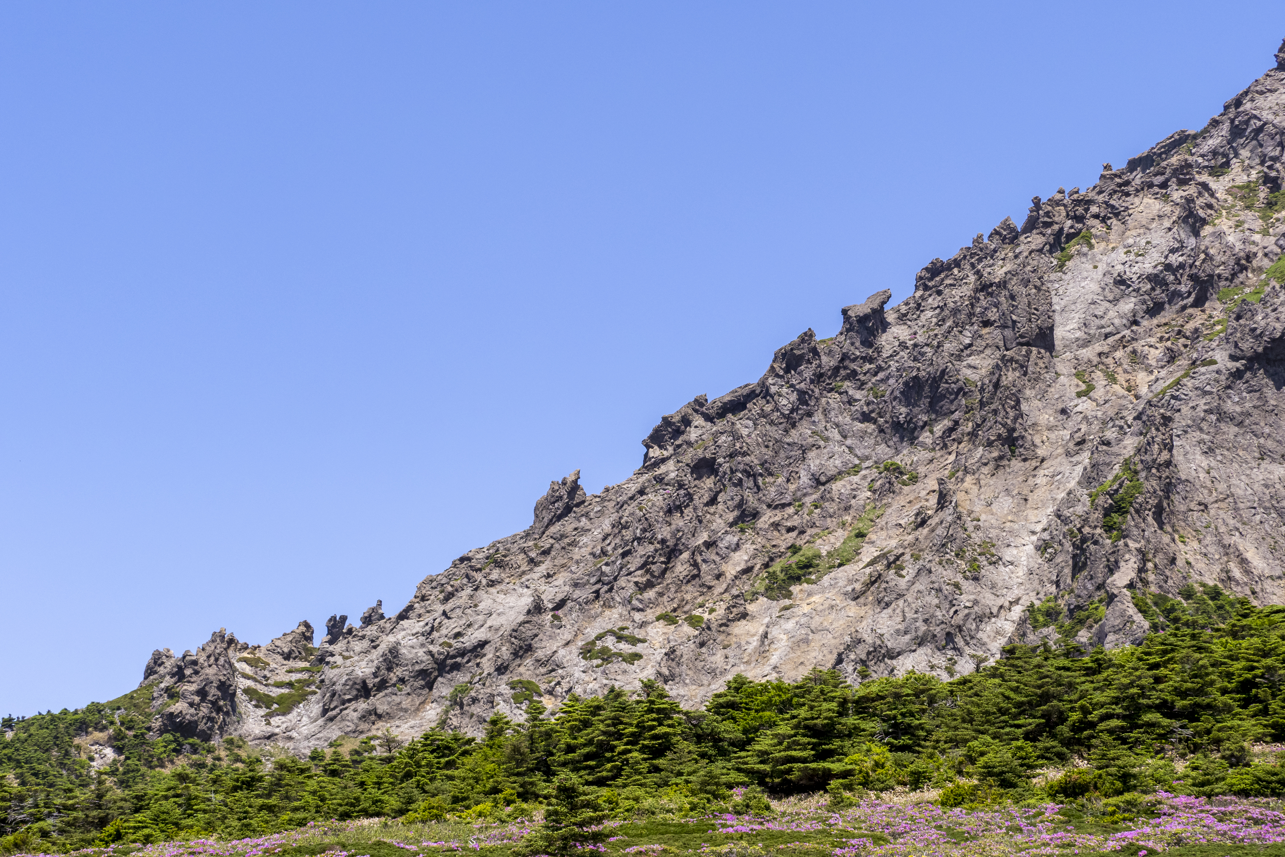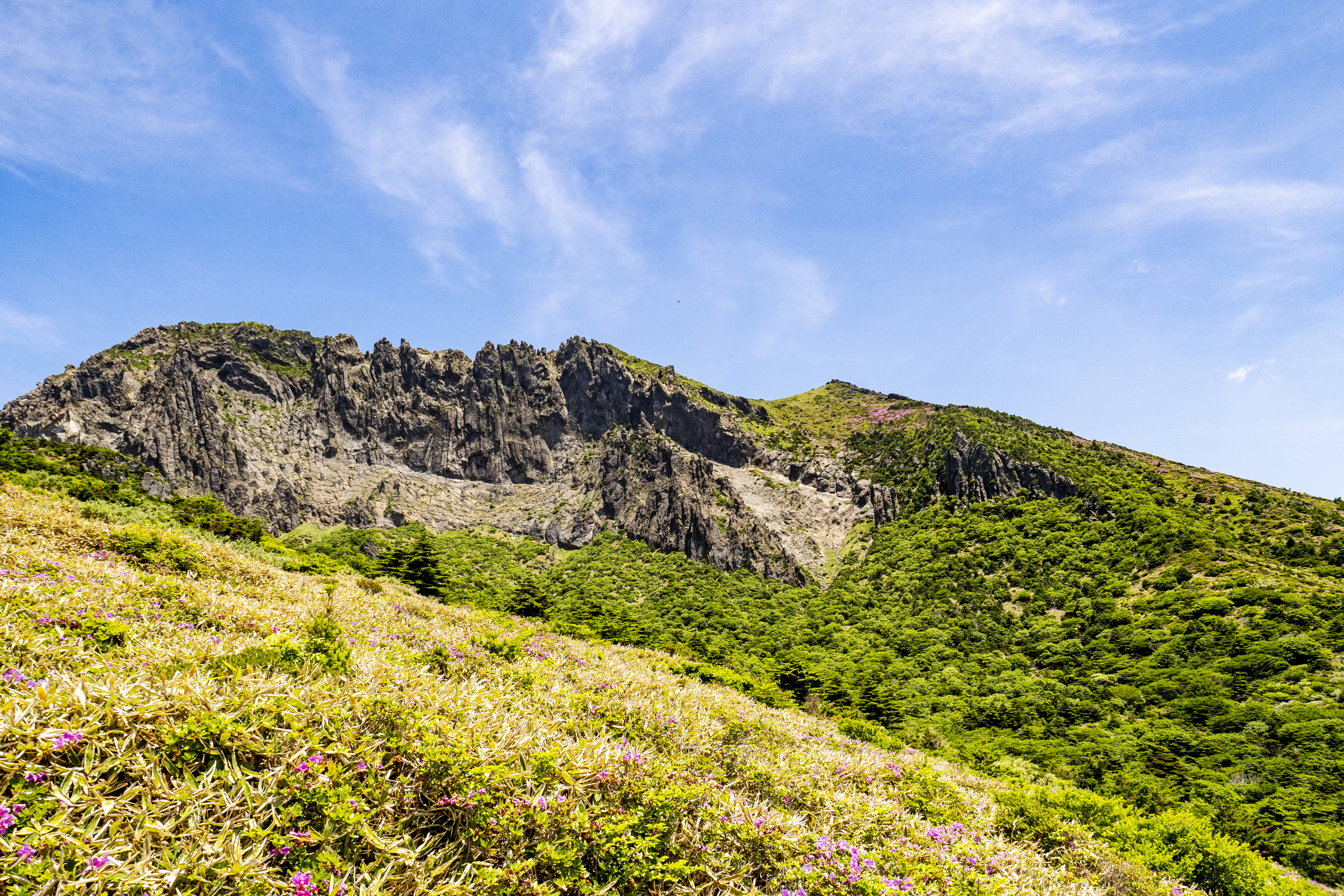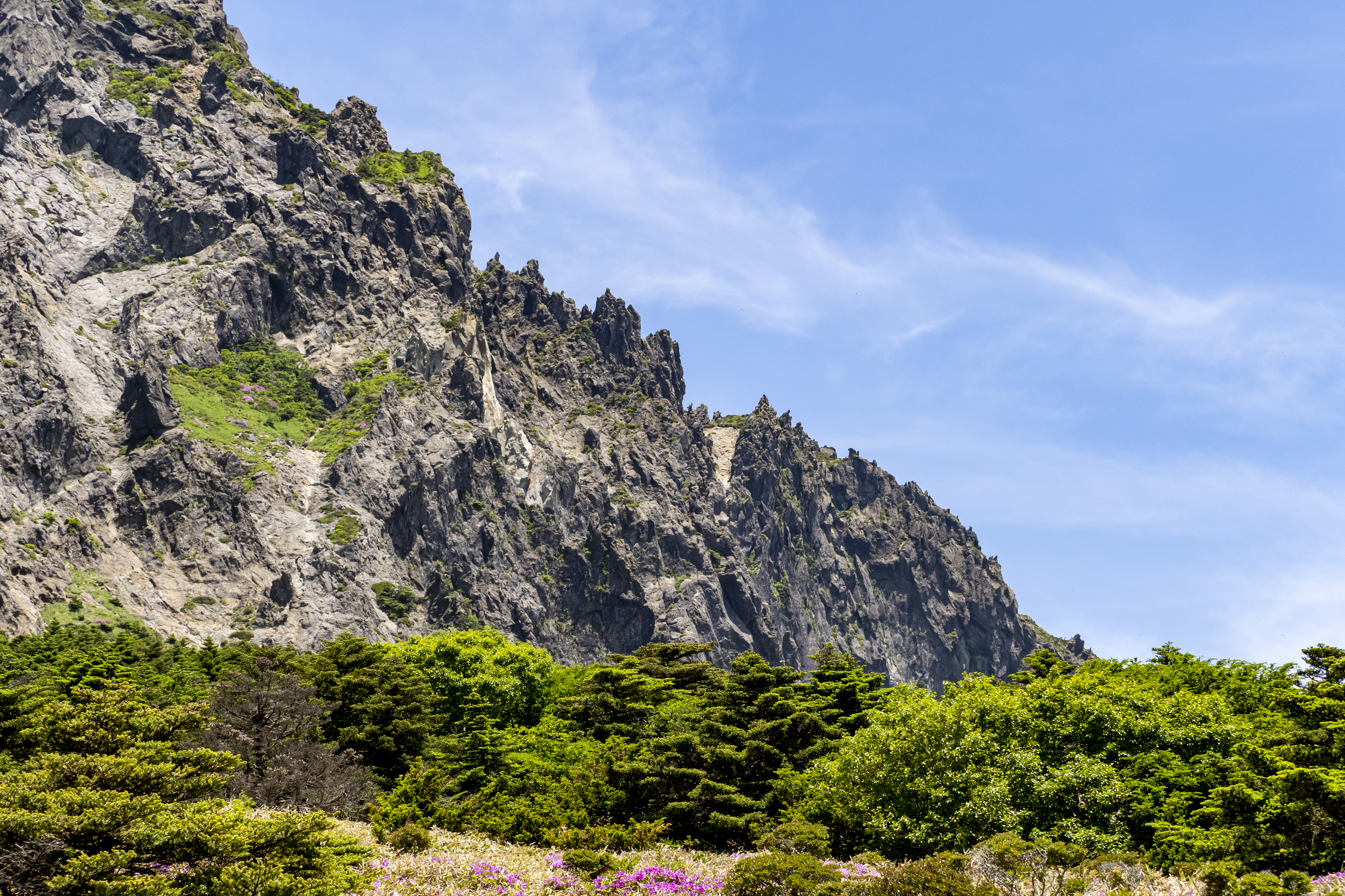 ▼ 백록담 서벽쪽이 손에 닿을 정도로 눈앞에 가까이 보입니다.